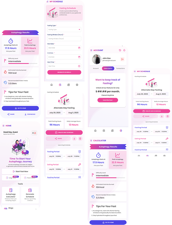 Fasting is no longer just about skipping meals—it’s about unlocking your body’s natural ability to heal, repair, and thrive. With our app, you’ll see exactly when key metabolic shifts occur, from fat burning to deep autophagy, giving you confidence and motivation at every stage of your fast.