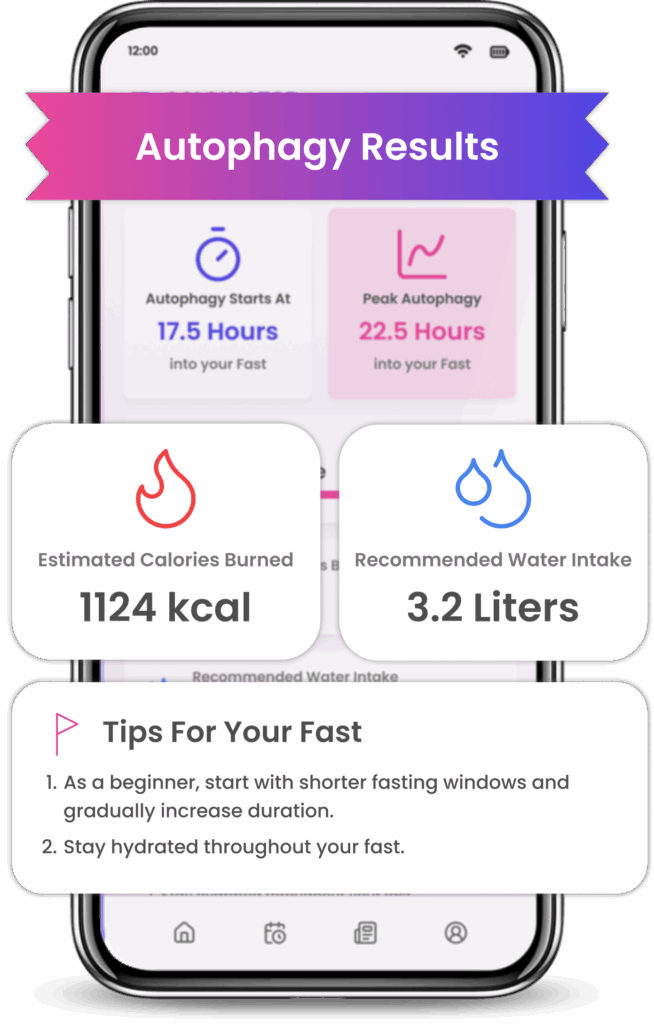 With our app, fasting is no longer a guessing game. Get clear insights into your body’s healing journey by seeing exactly when autophagy begins and when it reaches its peak. This empowers you to align your fasting window with your goals—whether that’s fat loss, detox, or cellular repair.